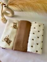 Rinkinį sudaro 3 vienetai dvigubo audinio merliukų, kurių dydis yra 40×50 cm, todėl tai puikus pasirinkimas visoms mamoms, kurios nori turėti po ranka švelnų ir praktišką pagalbininką. Muslino merliukai taip pat puikiai tinka kaip dovana, nes jų universalumas ir kokybė pravers kiekvienai šeimai.